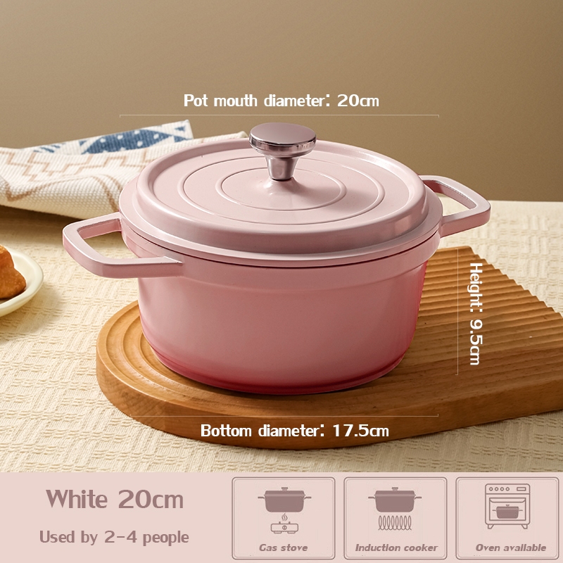 S&S Pink Ceramic Pot 20cm / 24cm Oven Suitable Large Capacity Stock Pot Non-Stick Pan with Aluminum Lid Stew Soup Enamel Gas Stove Casserole Cooking Kitchen Cookware