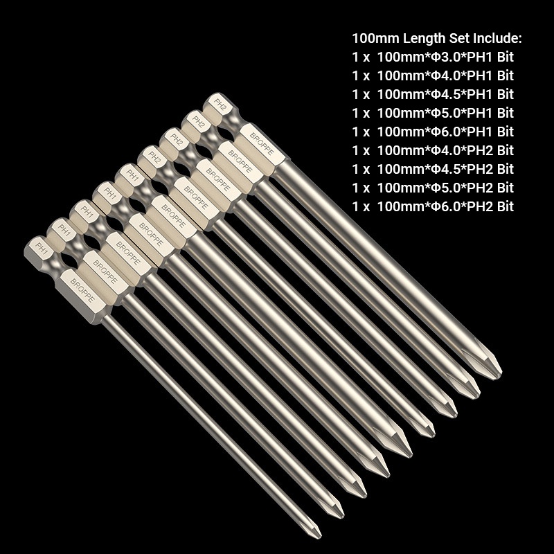 S2 Steel Phillips Screwdriver Bit Magnetic Cross Head PH0 PH1 PH2, 1/4" Hex Shank Screw Driver Bits Set 50/75/100/150mm