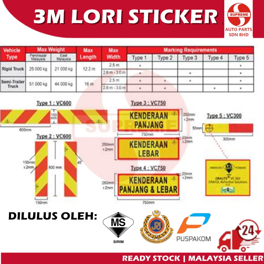 S2U Lorry Reflective Sticker 3M Diamond Yellow Red Puspakom JPJ Sirim Approved Stiker Lori Kuning Merah Lulus Puspakom