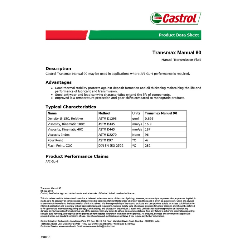S2U Original Castrol Gear Oil Transmax Manual Transmission Fluid 90 GL-4 4Liter Minyak Speed Gear Kereta Lori 4x4 EP90