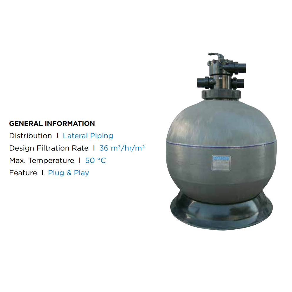 S500/ S600/ S700/ S800/ S900/ S1000 WaterCo Top Mount Micron Fiberglass Sand Filter