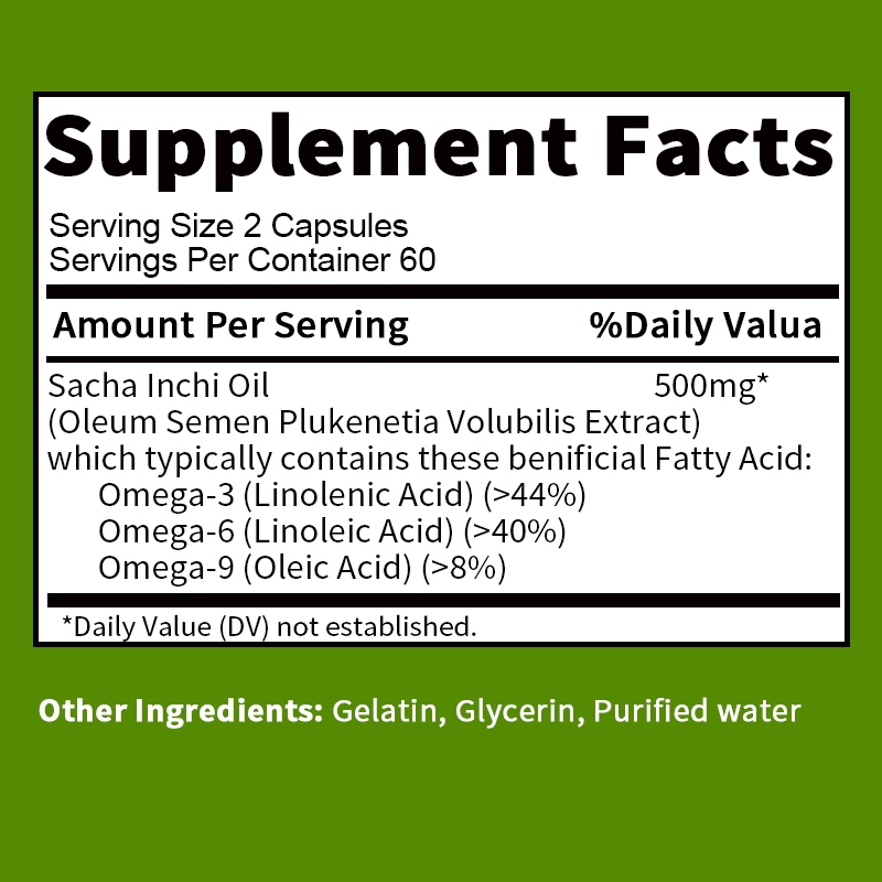 SACHA INCHI OIL - Contains Omega 3, 6, 9 and Vitamin E - Supports heart health, balances cholesterol levels, supports glucose metabolism and absorption - Vegetarian capsules
