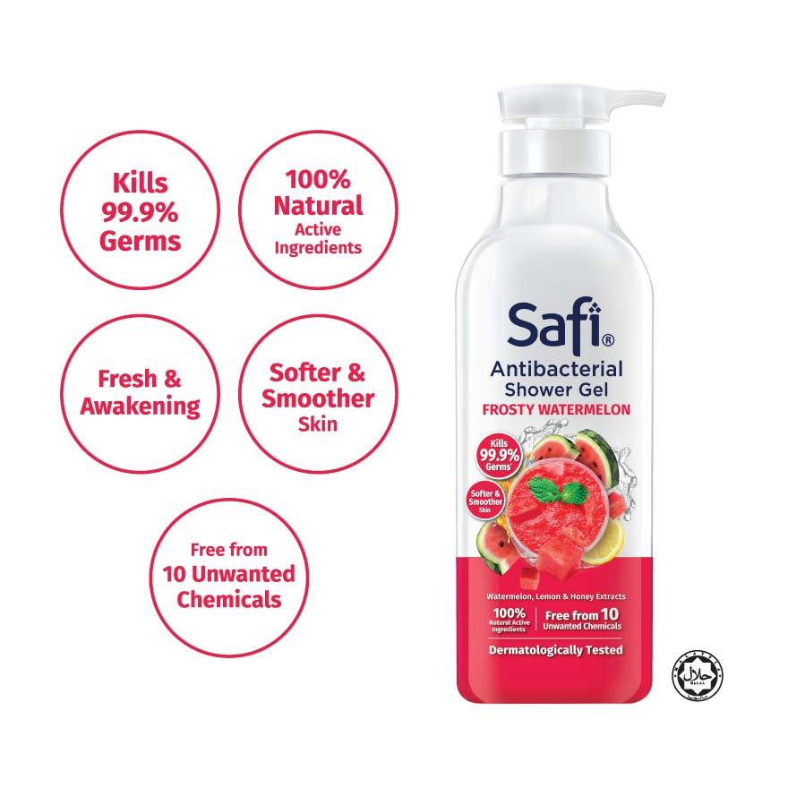 SAFI Fruity Antibacterial Shower 950g | Berry Smoothie | Serai Lime Splash | Frosty Watermelon | Passion Honey Frost