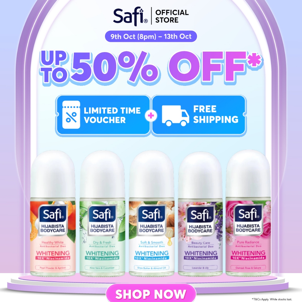 SAFI Hijabista Bodycare Whitening Deodoran Roll On Antibakteria Anti Peluh | Ketitam Ketibas Ketibus Ketitih Ketingi