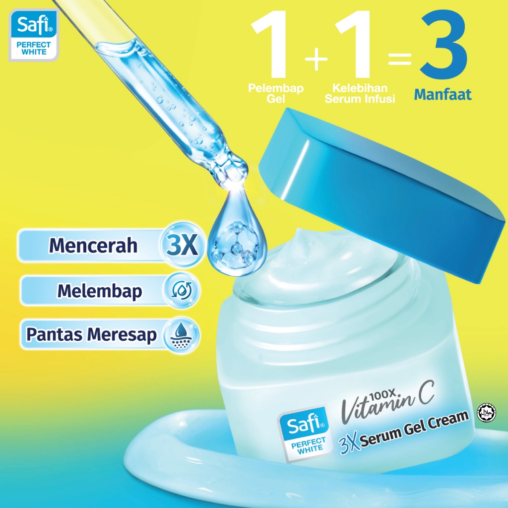 SAFI Perfect White 3X Serum Gel Cream Moisturiser 45g | 100X Vitamin C | 5% Niacinamide | Glycolic Acid