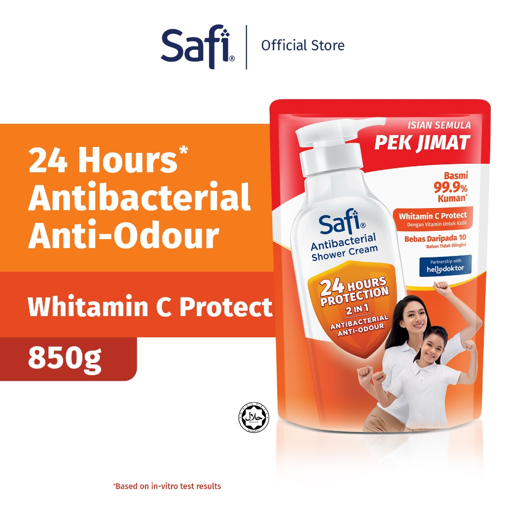 SAFI Shower Whitamin C Protect 975G / 850G | 24 Hours Protection | Anti-bacteria & Anti-Odour | Kills 99.9% Germs
