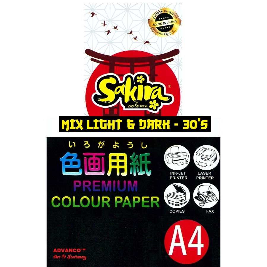 SAKIRA COLOUR PAPER | CONSTRUCTION PAPER | SIMILI PAPER - A4 80GSM (30'S) READY STOCK.