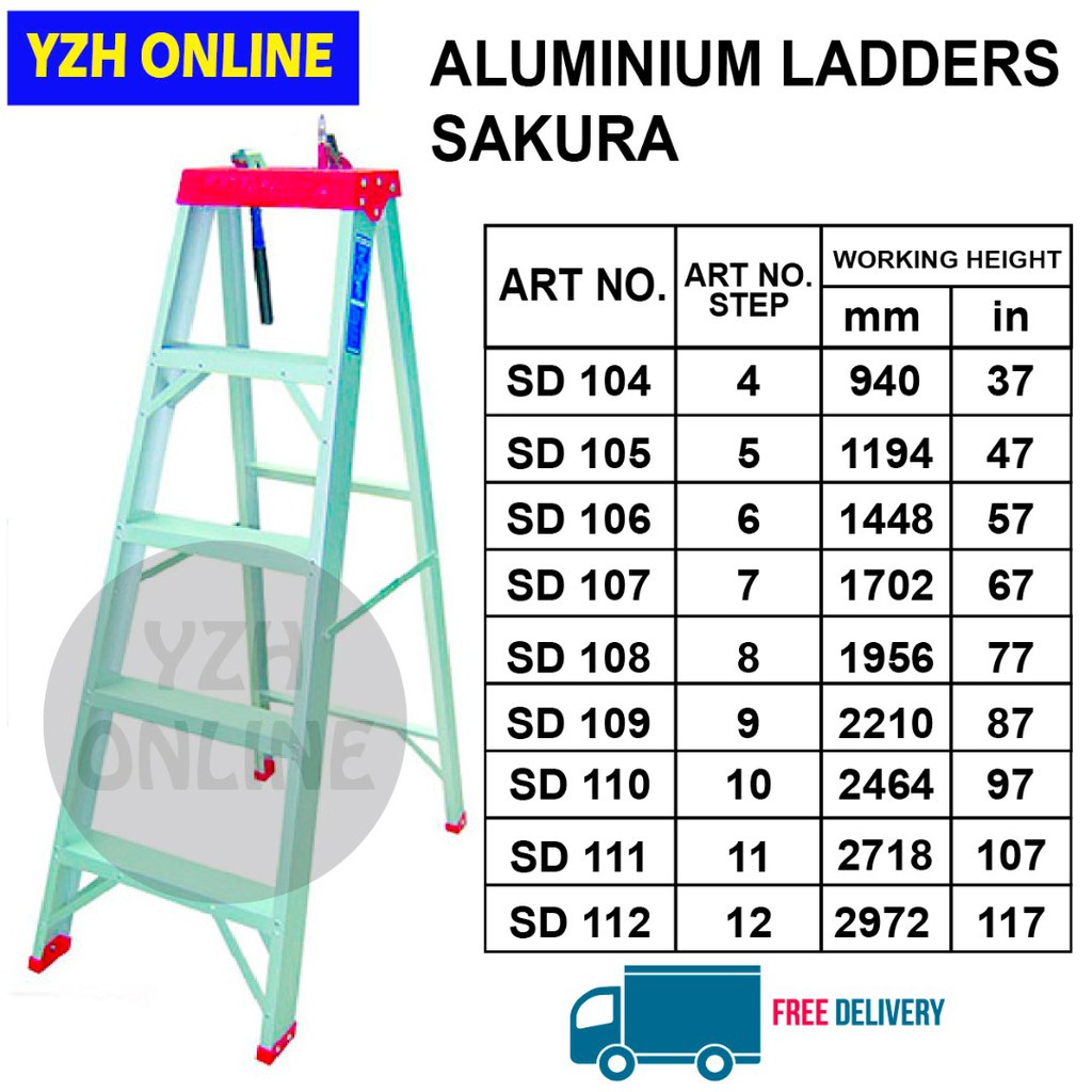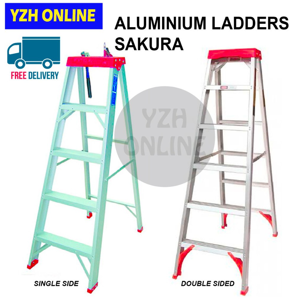 SAKURA ALUMINIUM LADDER SINGLE SIDE / DOUBLE SIDE / TANGGA TINGGI LIPAT ALUMINIUM [ READY STOCK] FREE DELIVERY