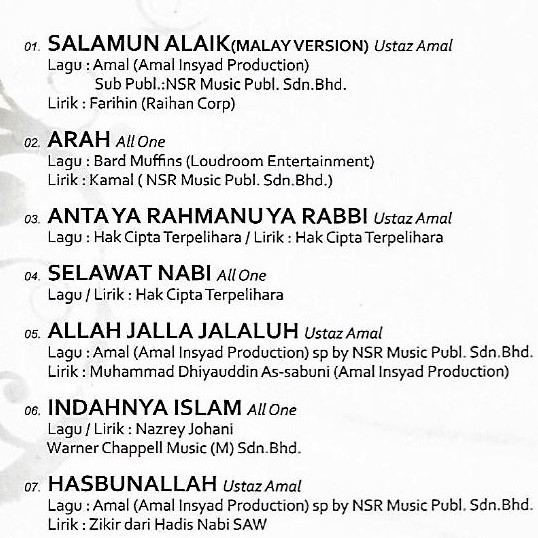 SALAM NASYID - Memori Hitz ( Islamic CD ) [ Ustaz Amal & All One 14 Kompilasi Lagu Lagu Terbaik Dalam 1 Album ]