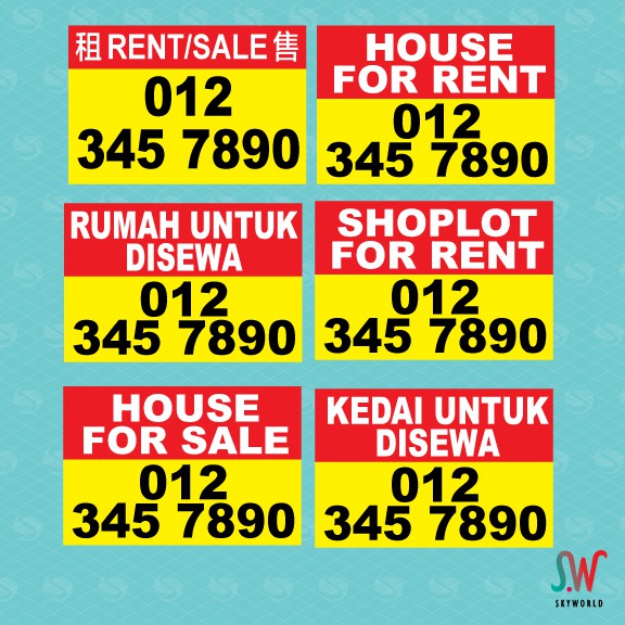 SALE RENT BANNER / SEWA JUAL BANNER / HOUSE FOR RENT HANGING BANNER