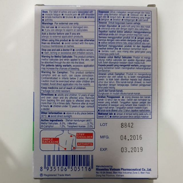 SALONPAS BACK/SHOULDER PAIN PATCH 20'S