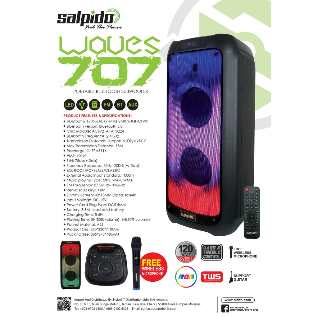 Salpido Waves 707 Portable Bluetooth Subwoofer Black