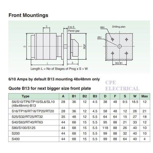 SALZER 16A 1 2 3 POLE ON OFF SELECTOR CAM SWITCH