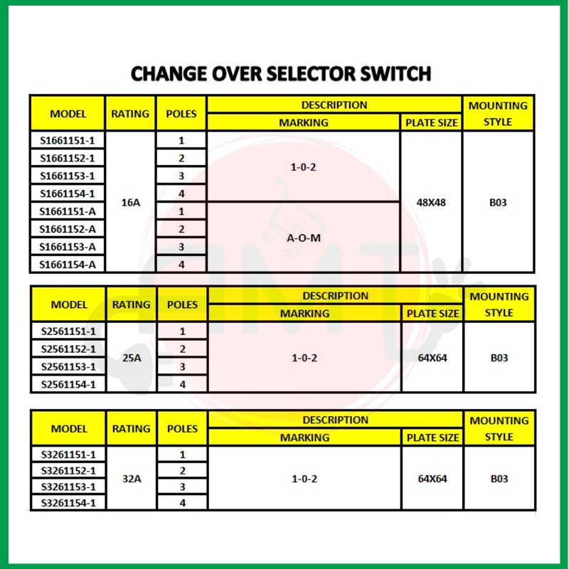 SALZER AOM 102 16A 25A 32A SELECTOR SWITCH CHANGE OVER 1P 2P 3P 4P S1661151 S1661152 S1661153