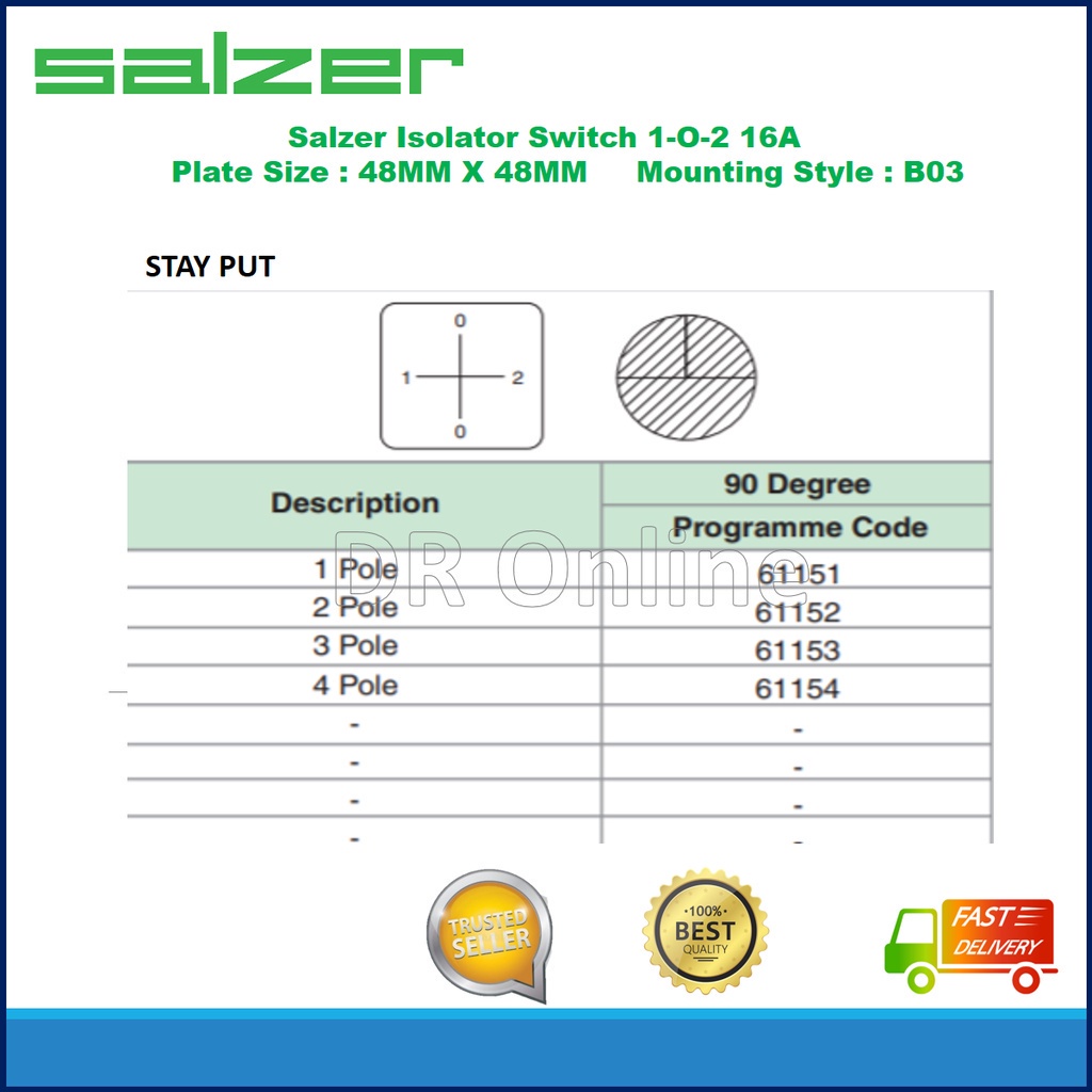 SALZER CHANGEOVER SELECTOR SWITCH 1-0-2 16A 3P(S1661153-1-B03)
