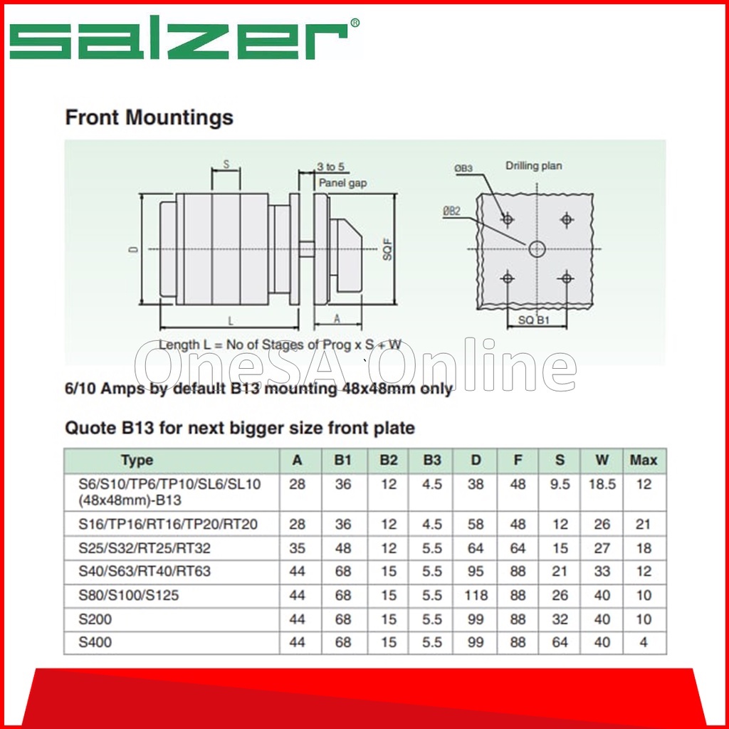 SALZER ISOLATOR SELECTOR.SWITCH OFF-ON 63A 2P 3P(SALZ-S6361002-B03,S6361003-B03)