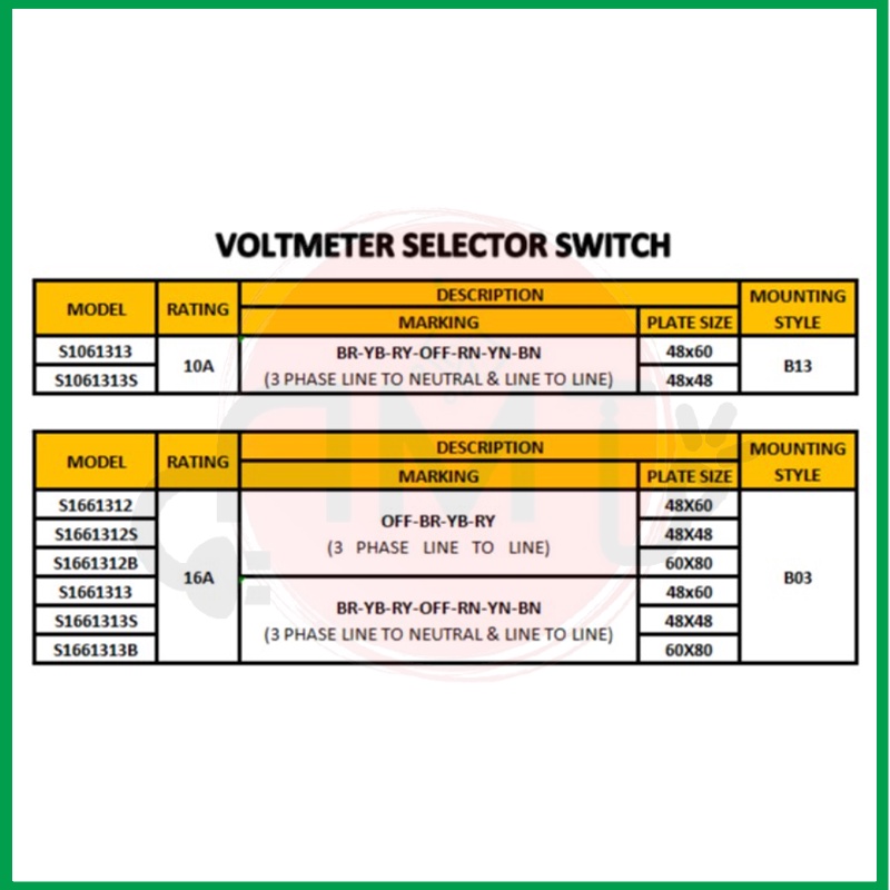SALZER VOLTMETER SELECTOR SWITCH 10A 16A 61313 61313S 61313B 61312 61312S 61312B