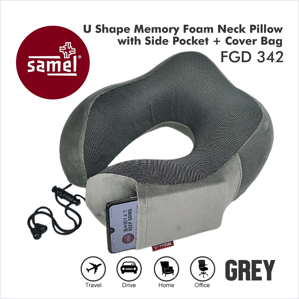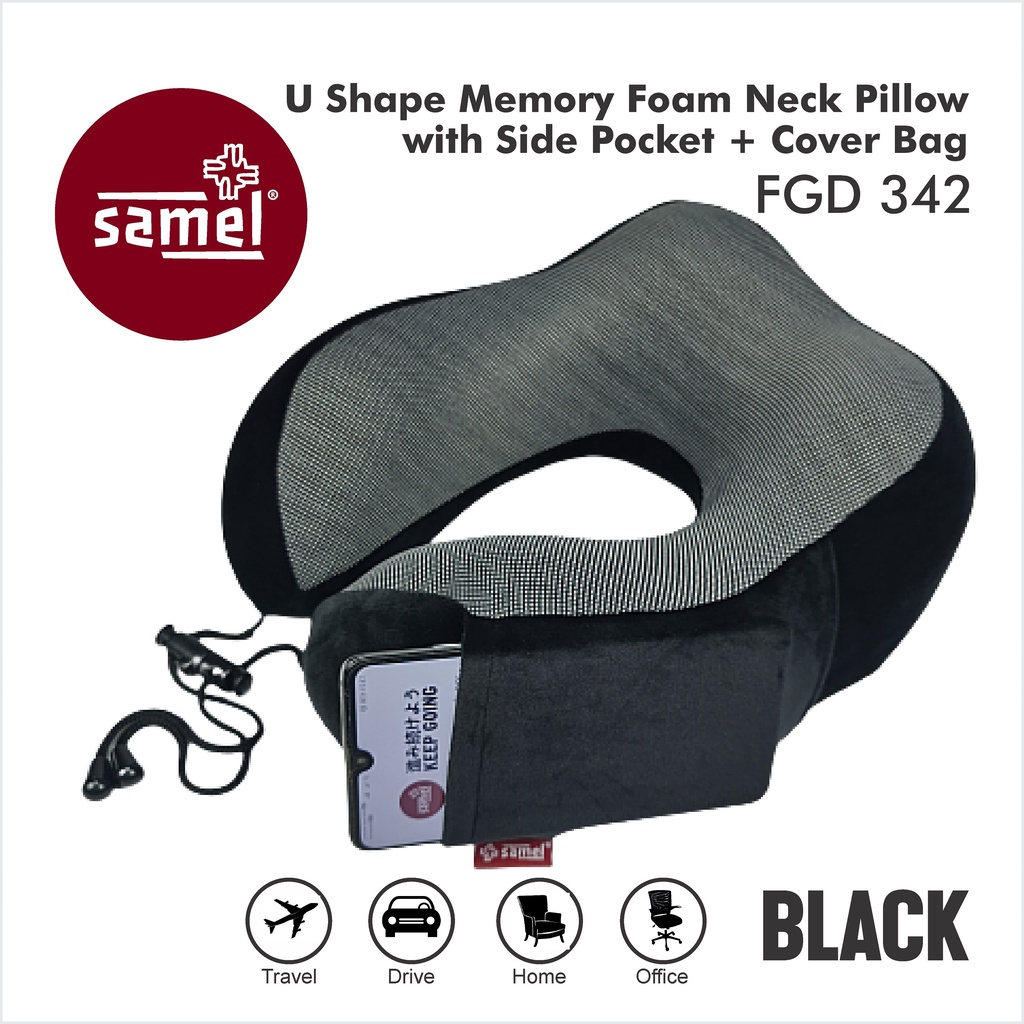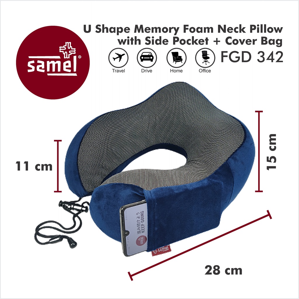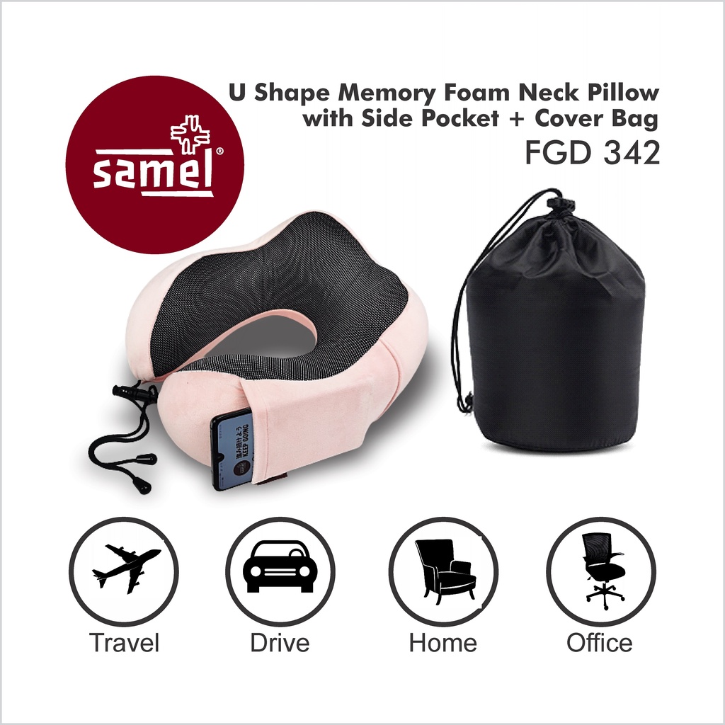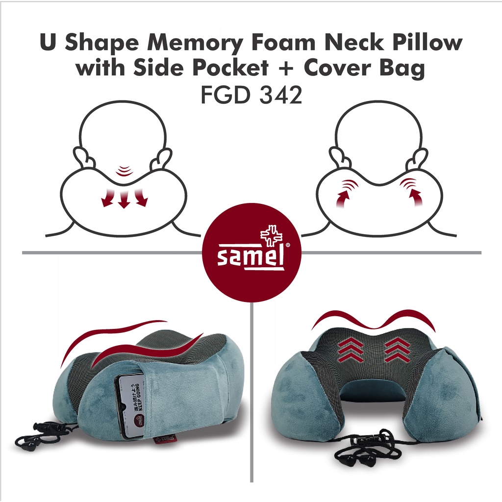 SAMEL FGD 342 U Shape Memory Foam Neck Pillow with Side Pocket + Cover Bag