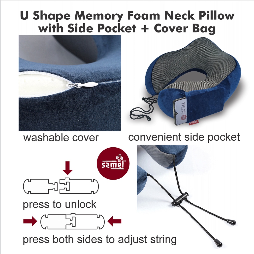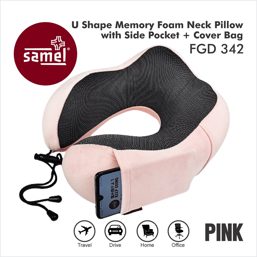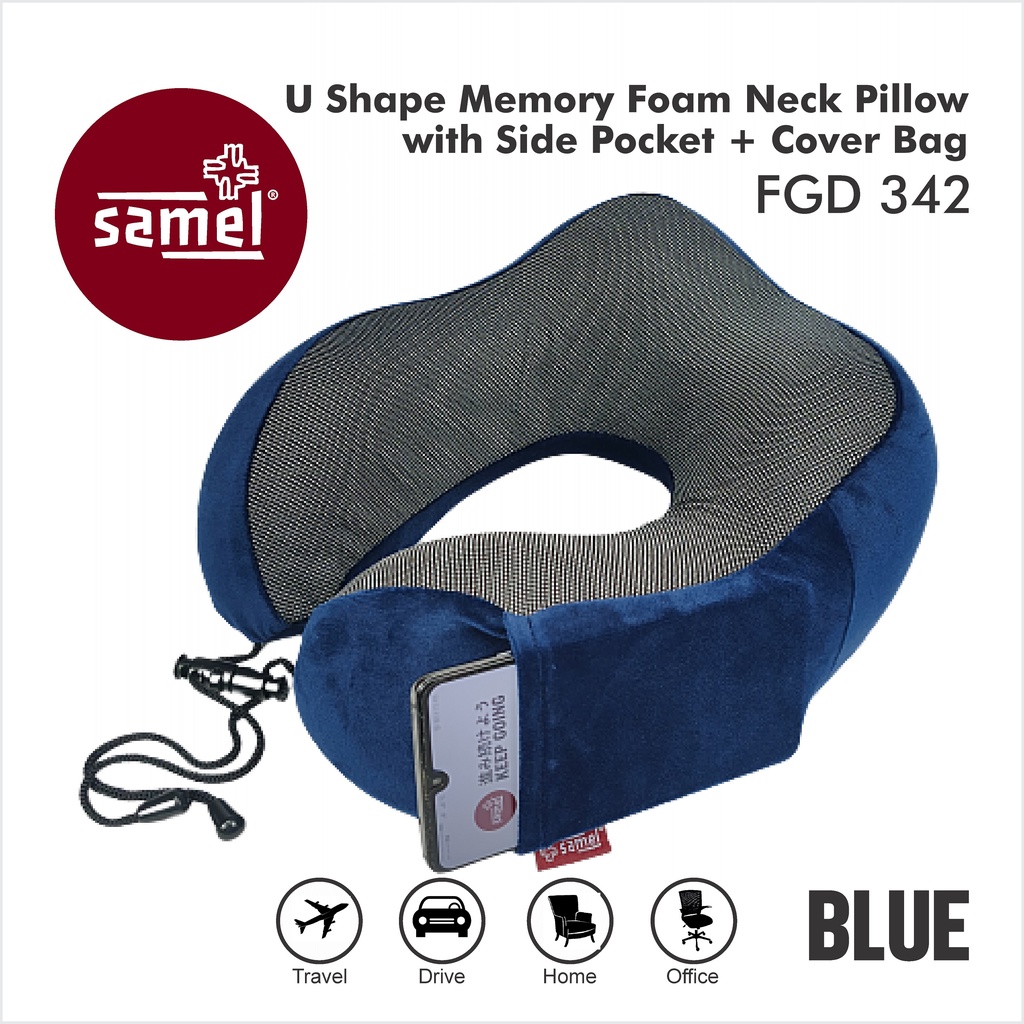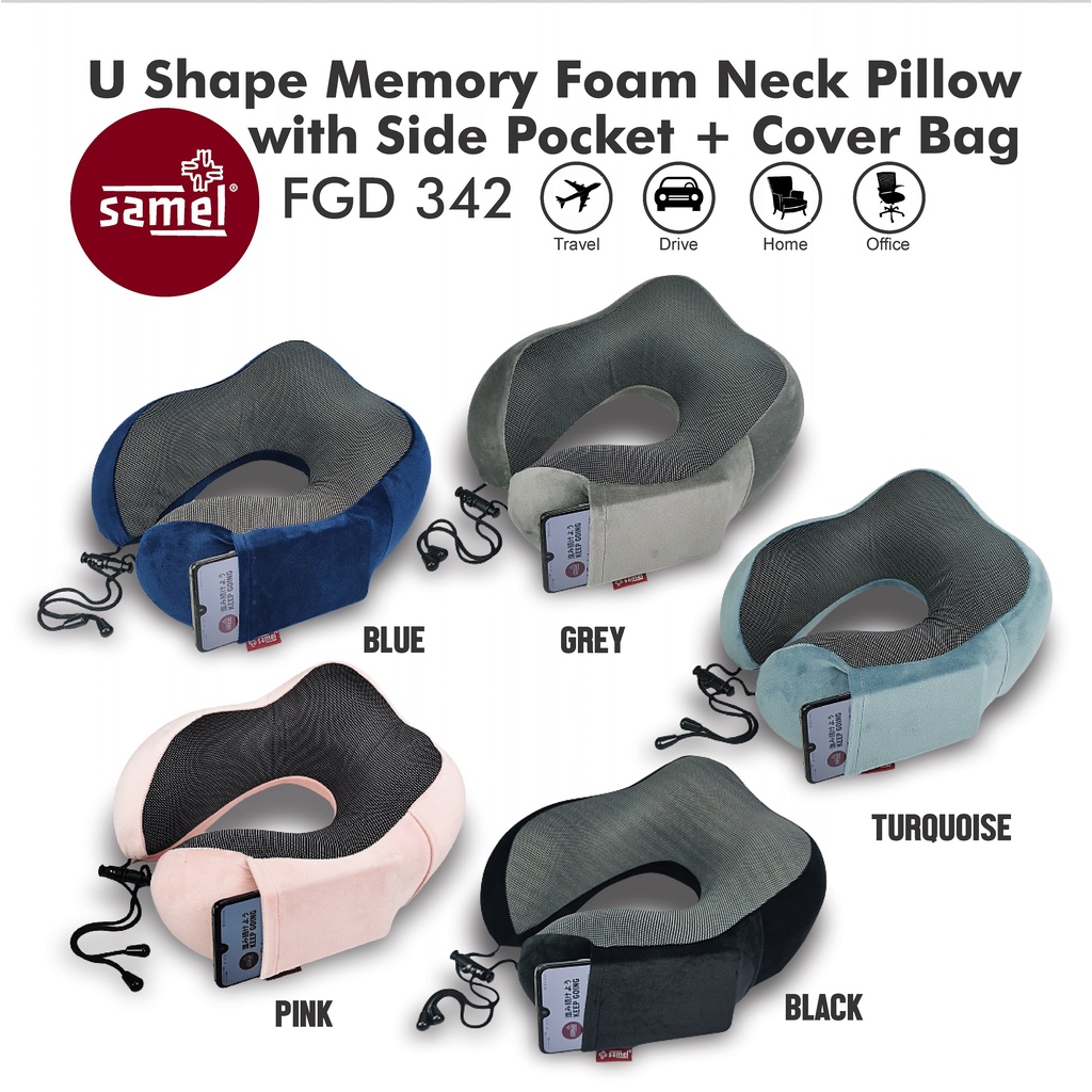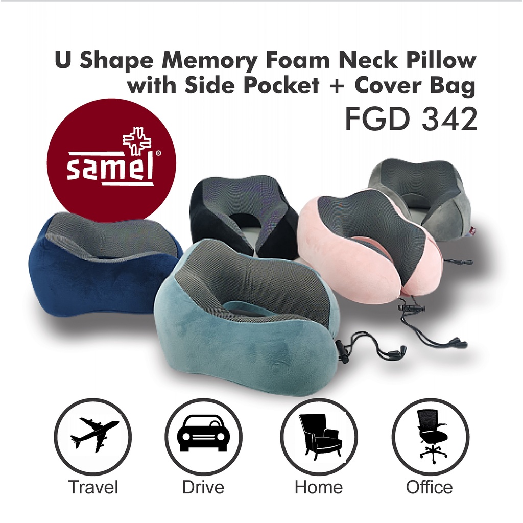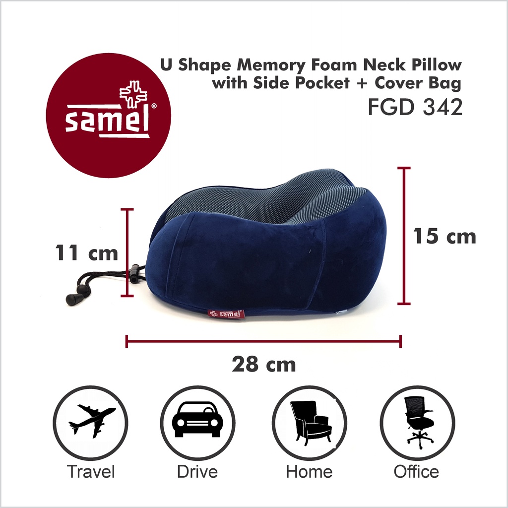 SAMEL FGD 342 U Shape Memory Foam Neck Pillow with Side Pocket + Cover Bag
