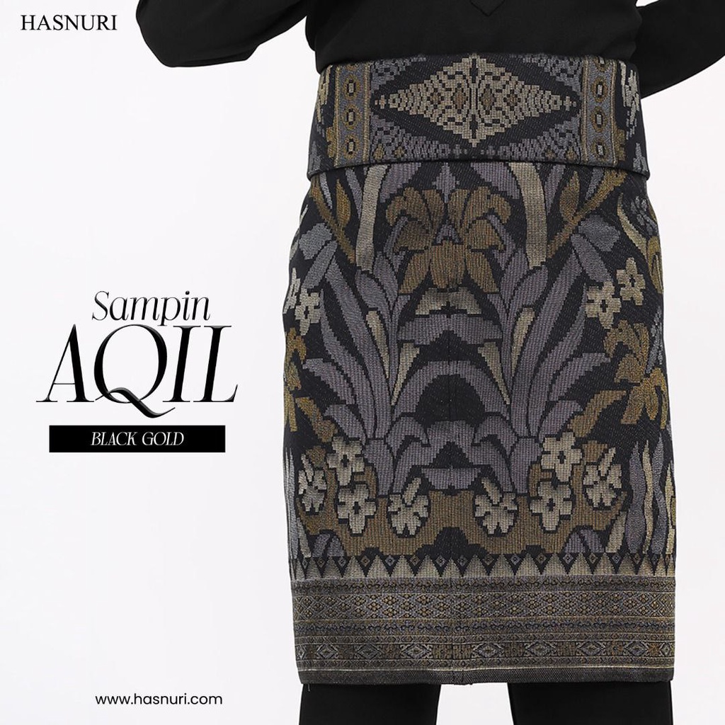 SAMPIN AQIL HASNURI * black & bold colour hitam sampin songket tenun motif bunga