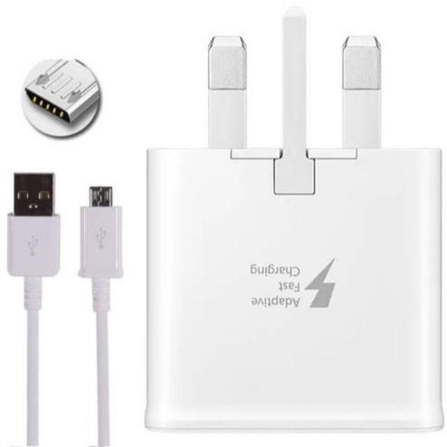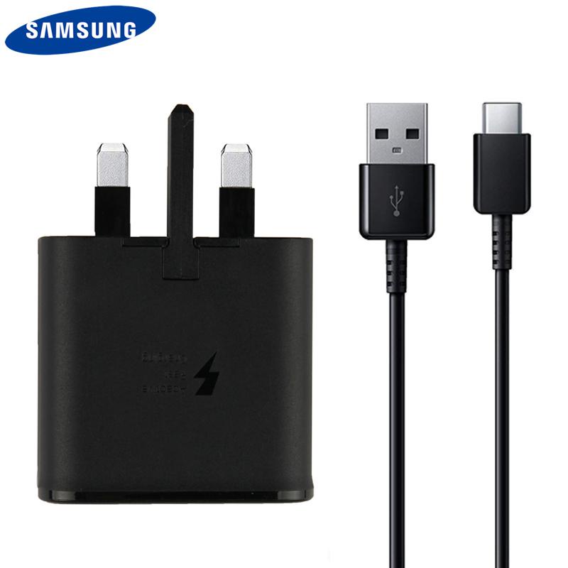 SAMSUNG GALAXY S10/ S10 PLUS T 3 PIN PLUG RAVEL ADAPTER FAST CHARGING CHARGER + 2 IN 1 WITH CABLE TYPE C (1 SET)