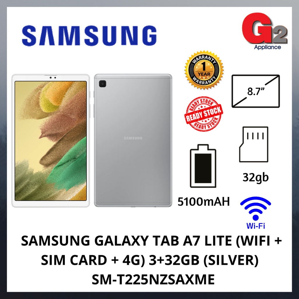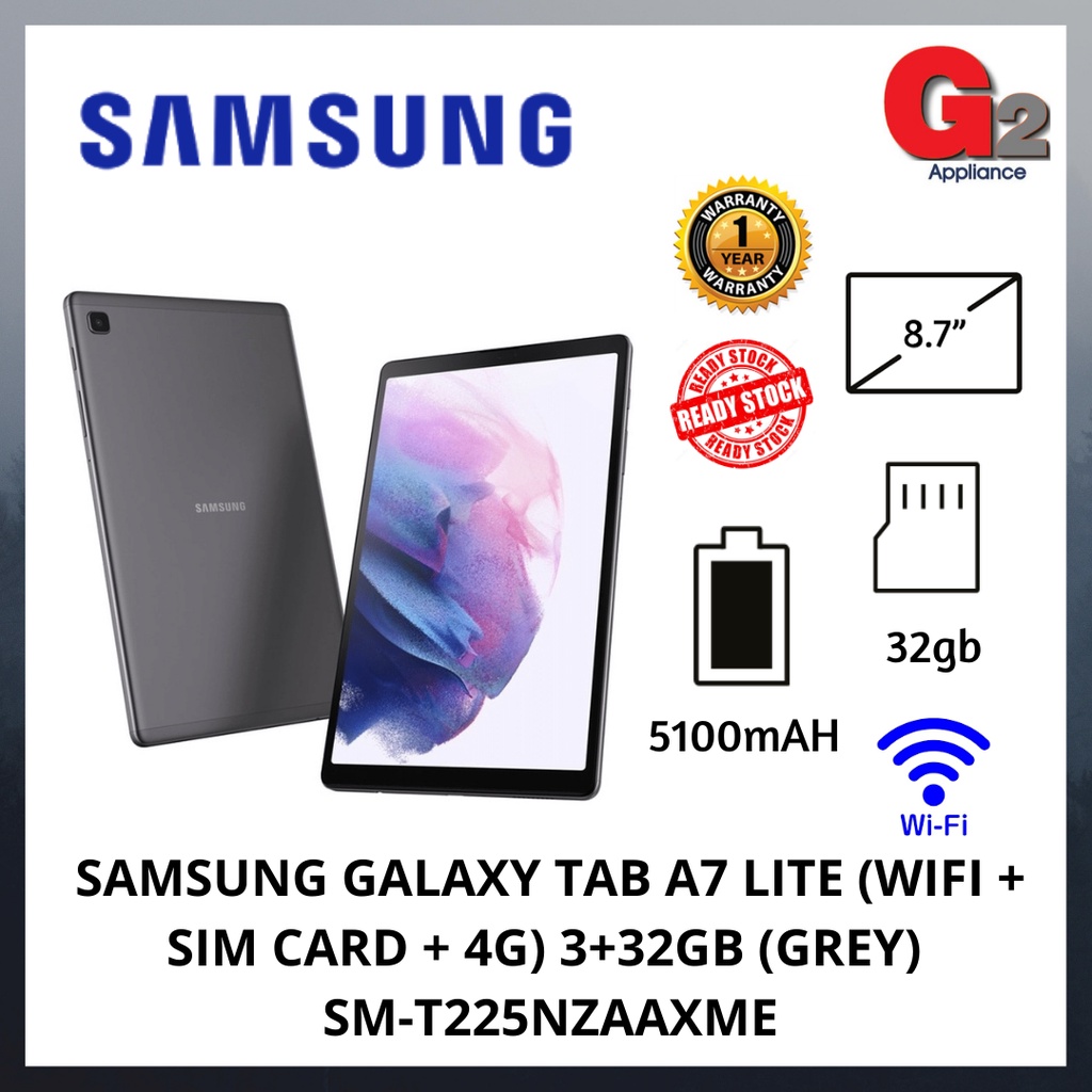SAMSUNG GALAXY TAB A7 LITE (WIFI + SIM CARD + 4G) 3+32GB SM-T225NZAAXME / SM-T225NZSAXME [SAMSUNG WARRANTY MALAYSIA]