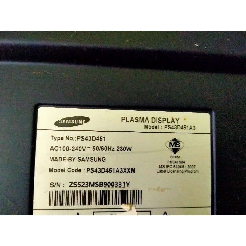 SAMSUNG PS43D451A3 PLASMA TV SPARE PART Y-Board 09479A / LJ92-01797A .
