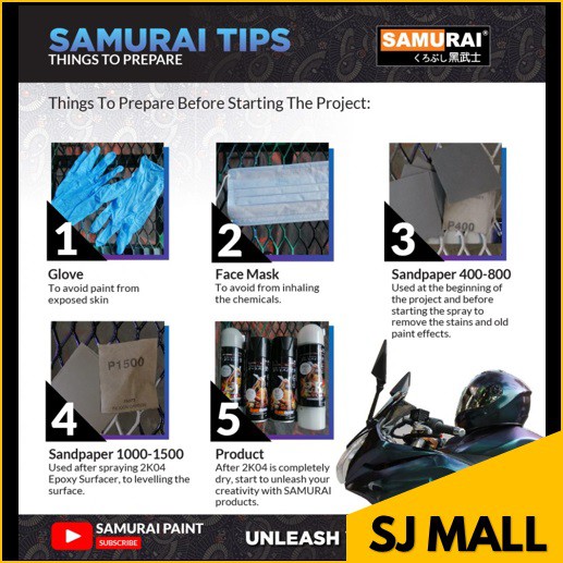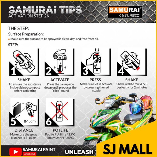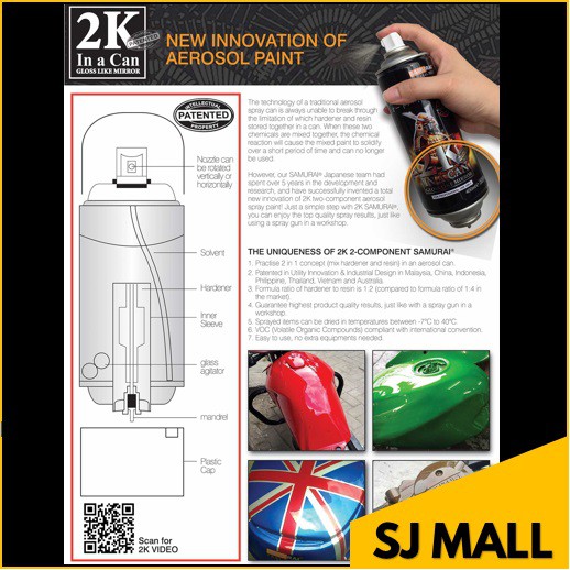 SAMURAI SPRAY 2K TOP COAT CLEAR 2K01 400ML / READY STOCK / ORIGINAL / SAMURAI SPRAY PAINT / SAMURAI 2K CLEAR [SJ MALL]