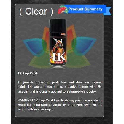 SAMURAI SPRAY PAINT - 1K - CLEAR