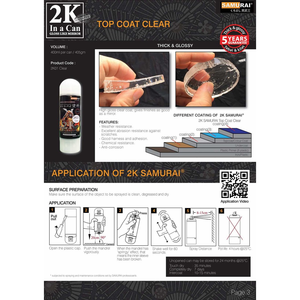 SAMURAI SPRAY PAINT - EPOXY SPRAY PAINT 2K TOP COAT CLEAR - NO. 2K01 CLEAR