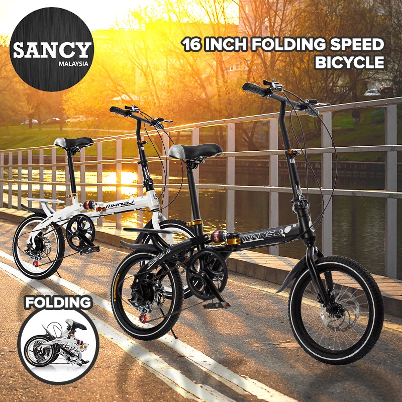 SANCY 16 Inch Folding Speed Bicycle Double Disc Brake Shock Absorber Bike Sport Outdoor