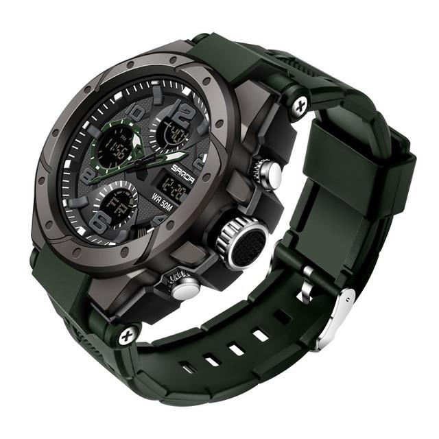 SANDA 6008 Sport Watches Mens Military Waterproof Shockproof Watch Dual Display Auto Date Male Digital Wristwatches
