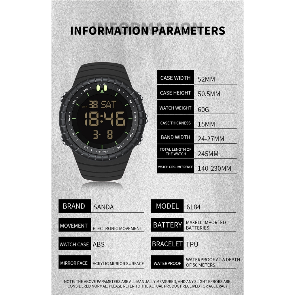 SANDA 6184/in stock Classic Style Chronograph Sports Multifunctional Fashion Waterproof Night Light LED Men's Watch