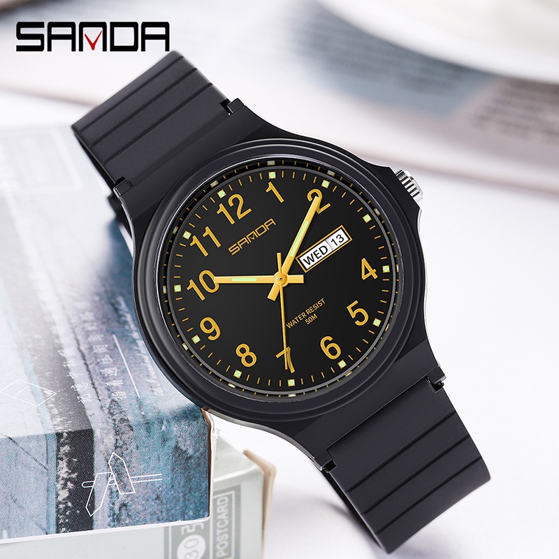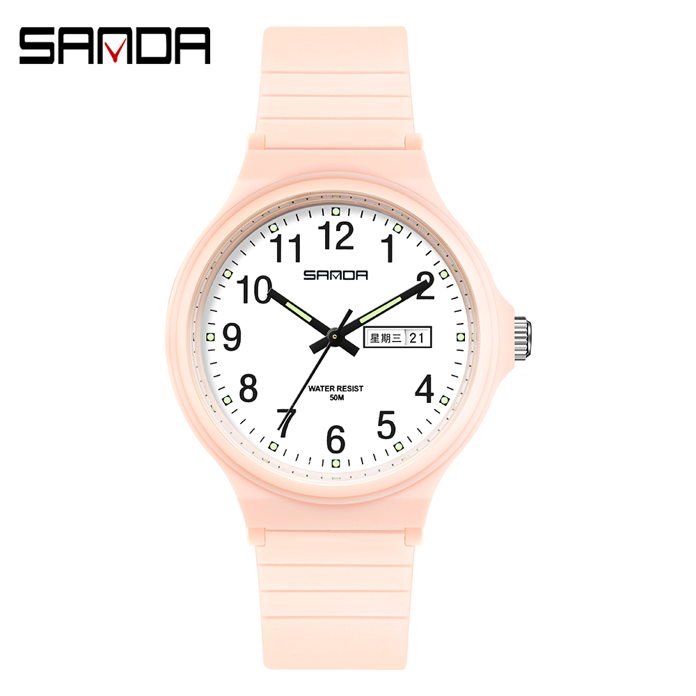 SANDA Fashion Simple Women Watch Calendar Week Display Outdoor Sports Waterproof Electronic Quartz Watch 6060-2