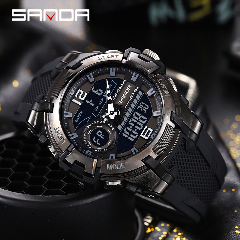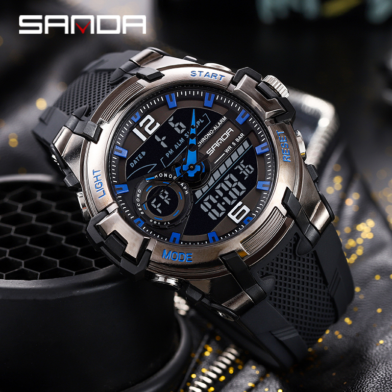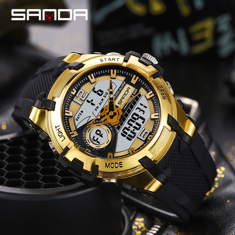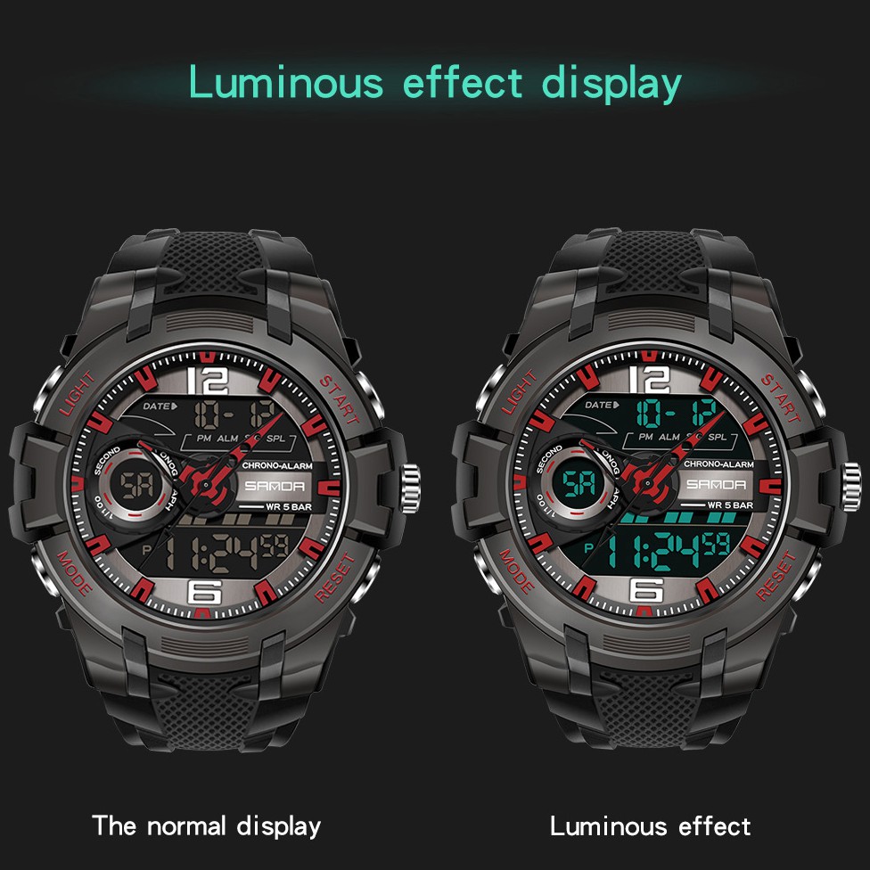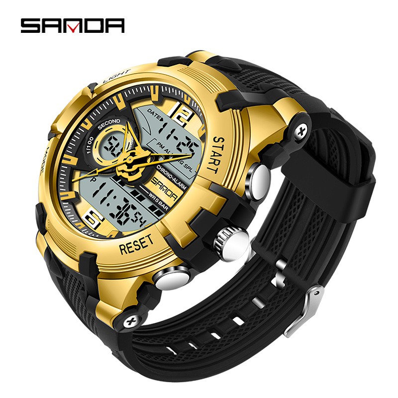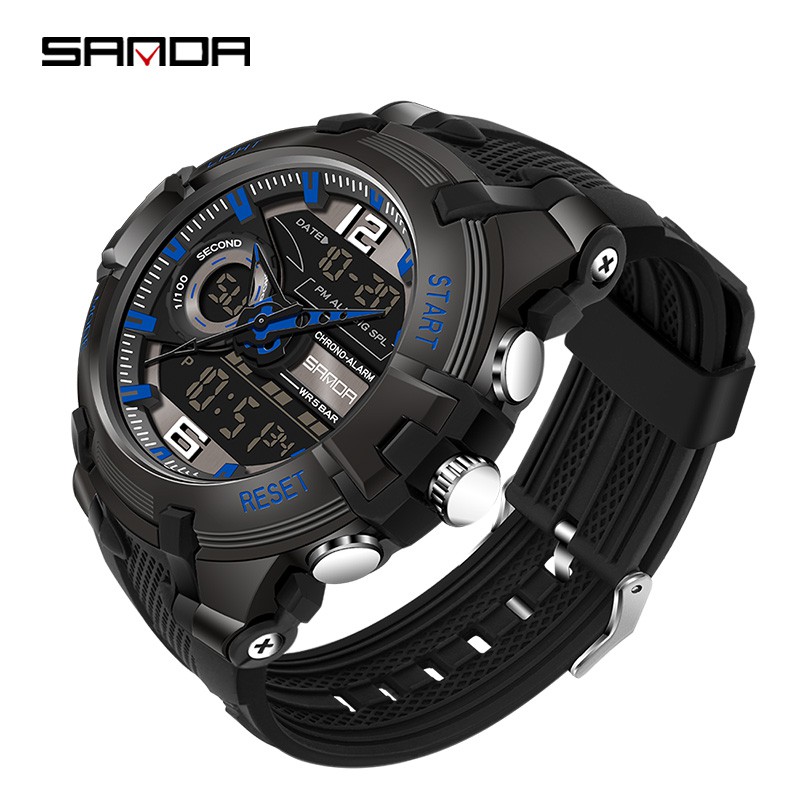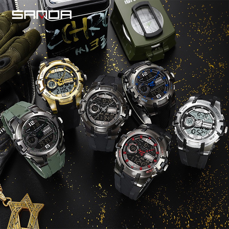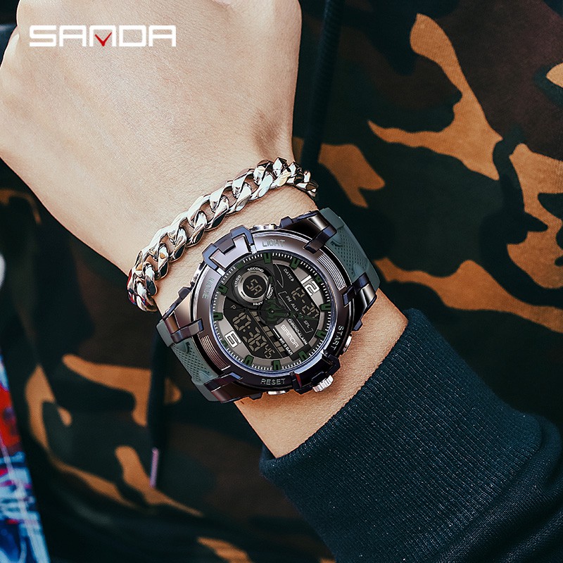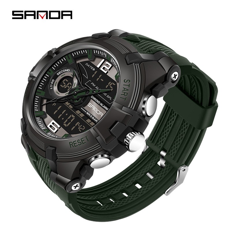 SANDA Sports Watch Men Watch Waterproof Army Green Analog Military Fashion LED Digital Multi-function Men Watch