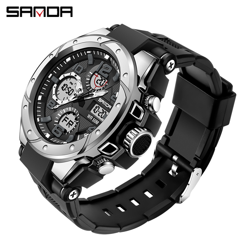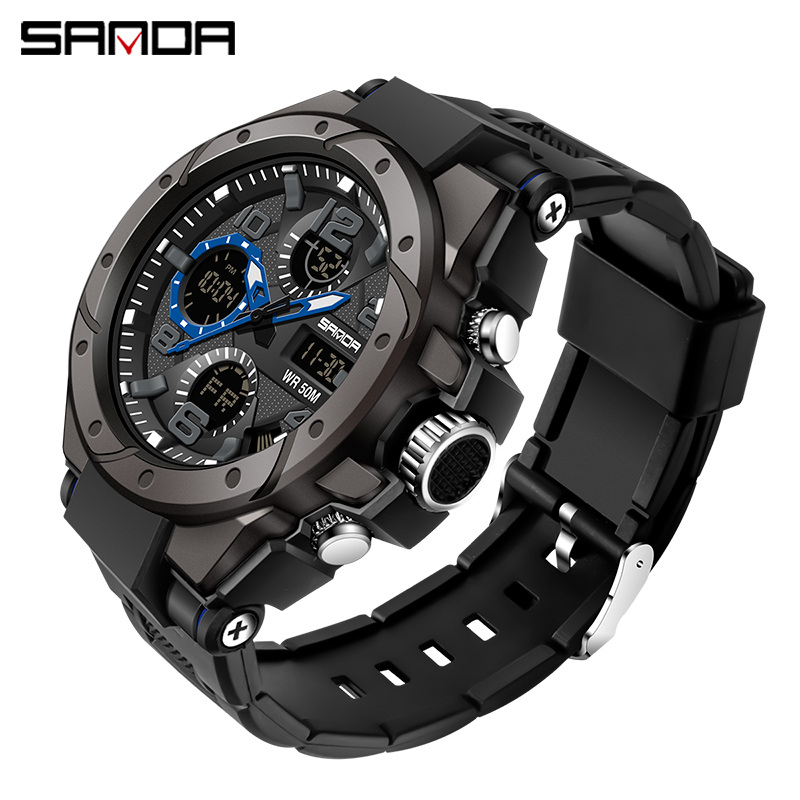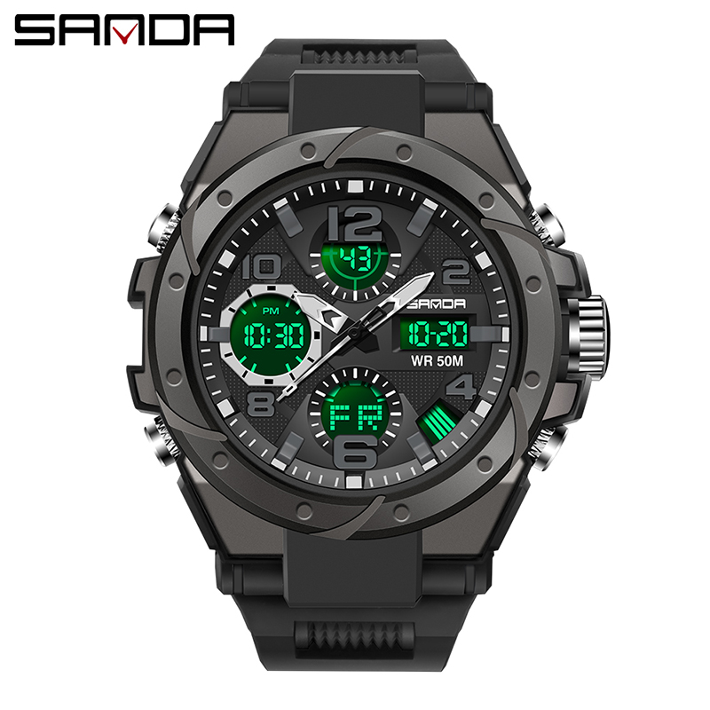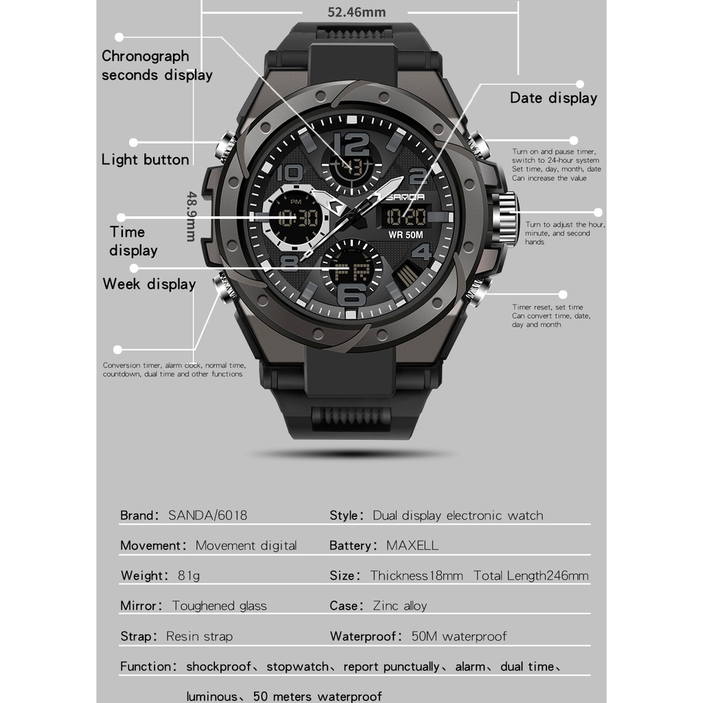 SANDA Waterproof Men Watch Sports Luxury Quartz LED Multifunction Swimming Military Mens Watch 6008