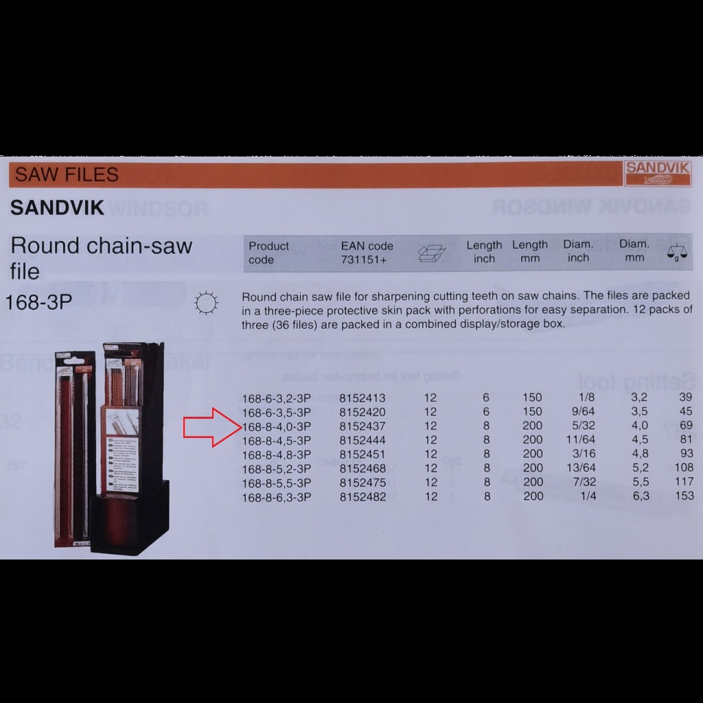 SANDVIK (Sweden) Round Chainsaw File 4mm dia. x 200mm L 168-8-4.0-3P | Chain Saw | Kikir Besi Gergaji Kikir Bulat Gosok