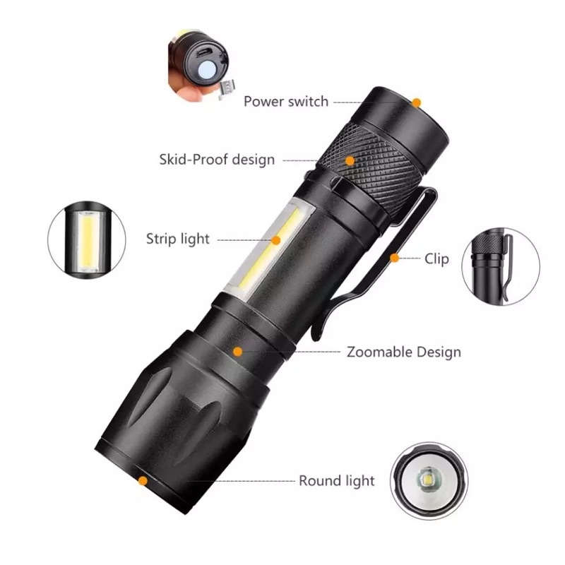 SANGAT TERANG!! Lampu Picit Mini Torchlight Flashlight LED With Side Lamp USB / Lampu Suluh Lampu Picit Led Tahan Lasak