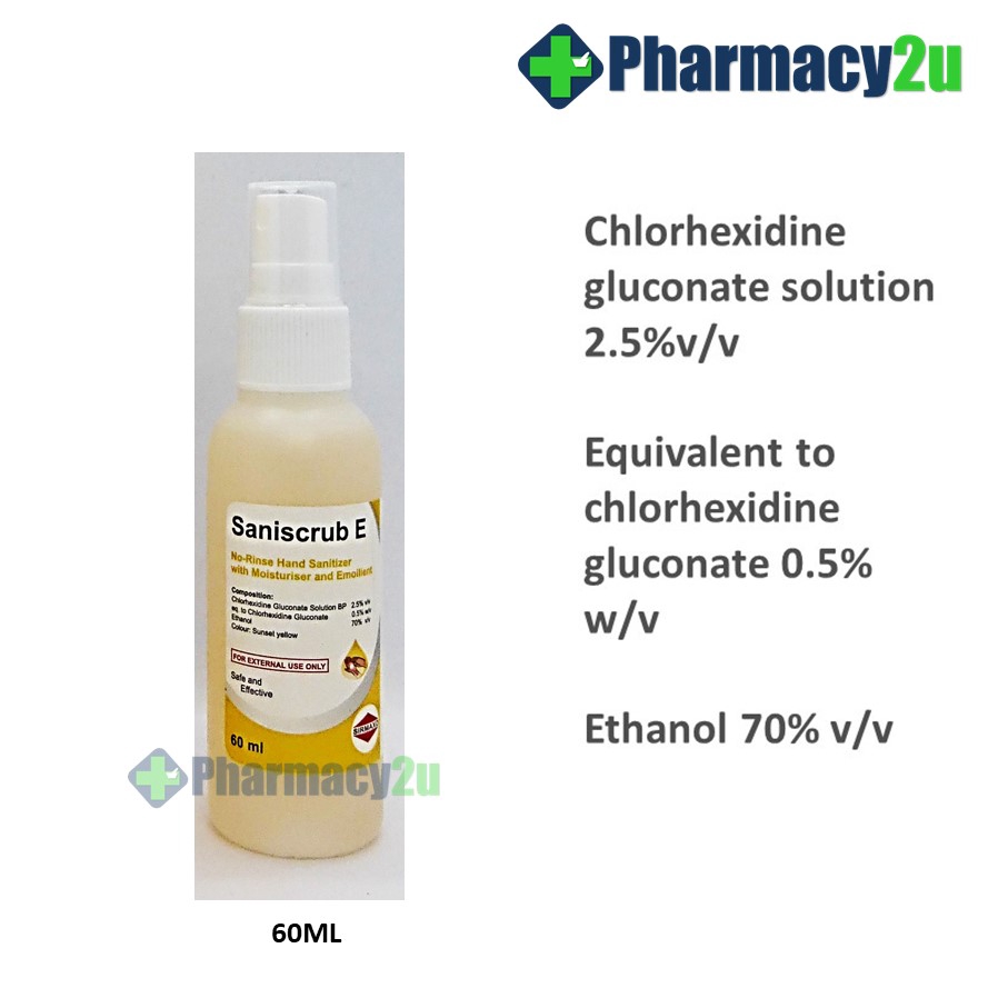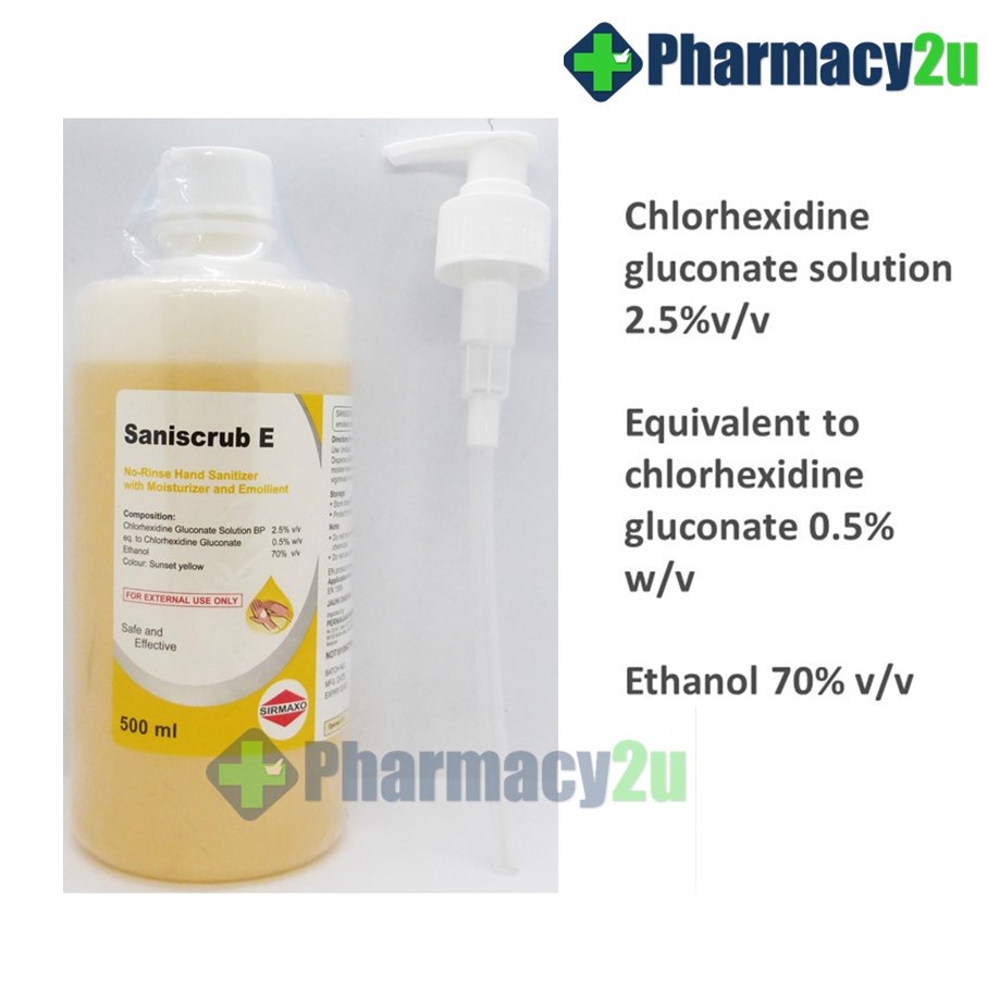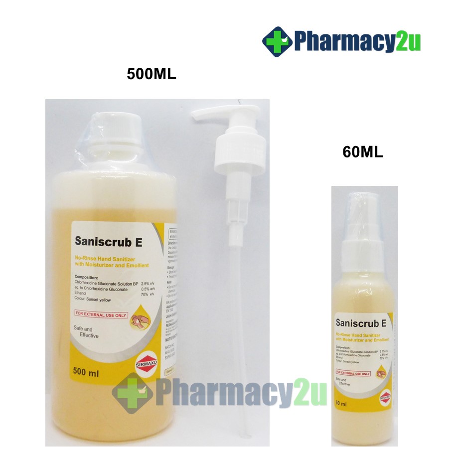 SANISCRUB E HAND SANITIZER 500ML/60ML ALCOHOL PLUS CHLORHEXIDINE HAND SANITISER