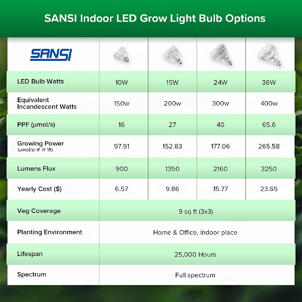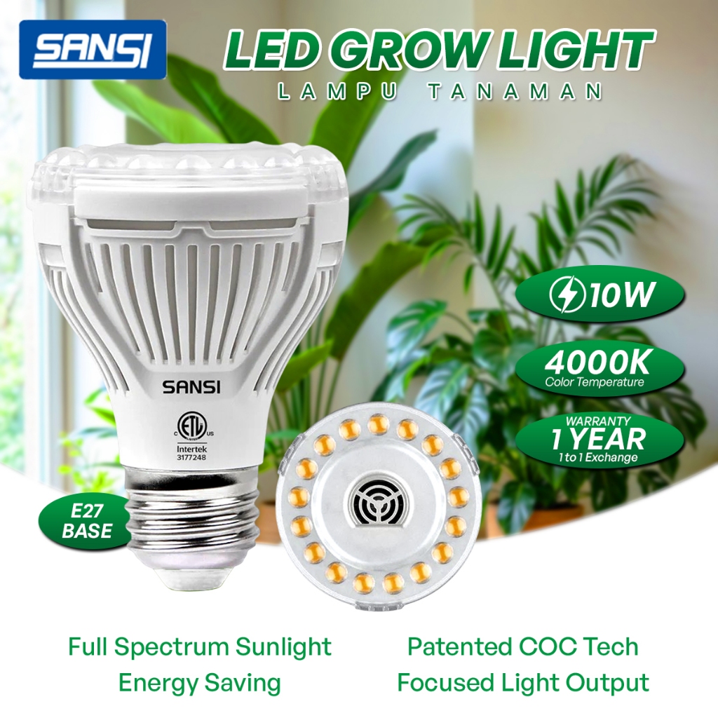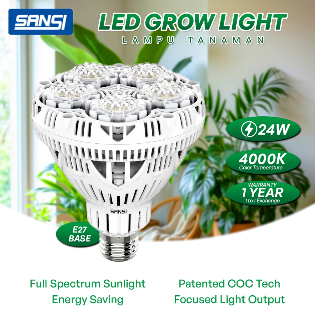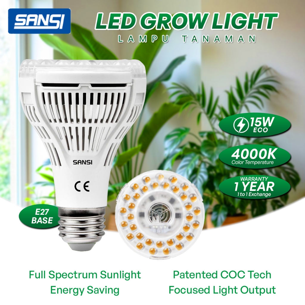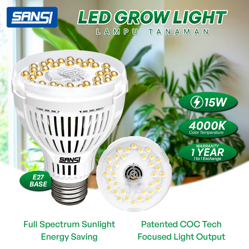 SANSI 10W/15W/24W/36W LED Grow Light Bulb 4000K Full Spectrum E27 Daylight For Indoor Garden Houseplants Lampu Tanaman