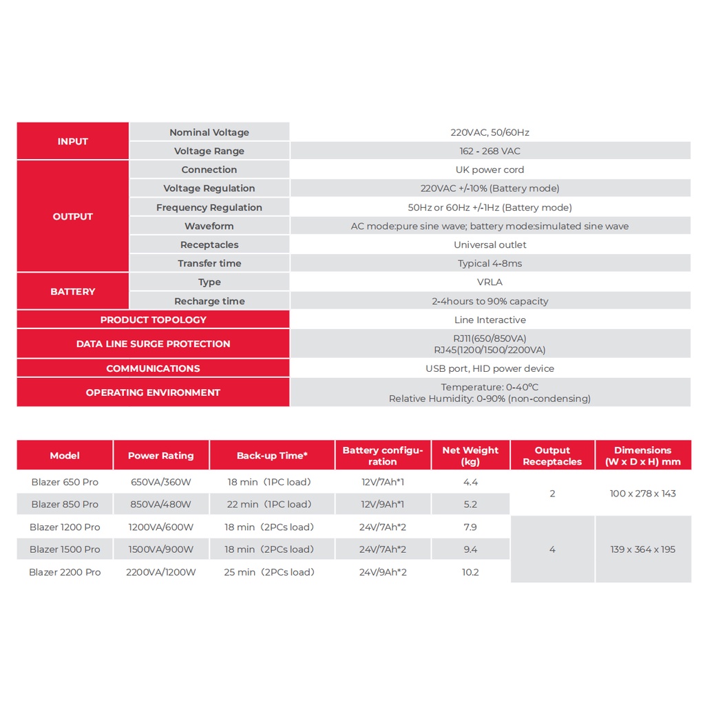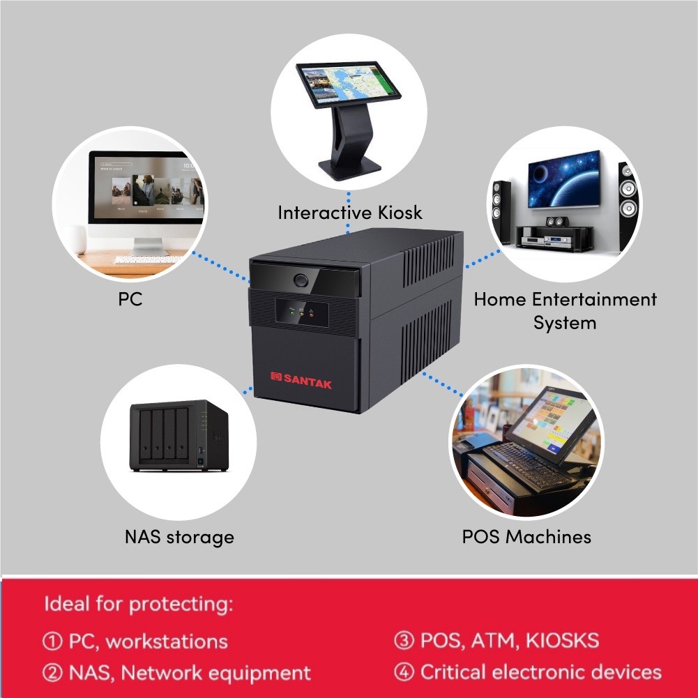 SANTAK 650VA / 360W UPS Power Backup Battery with AVR For Computer, Modem,Router Uninterrupted Power Supply Battery Backup Blazer 650 Pro