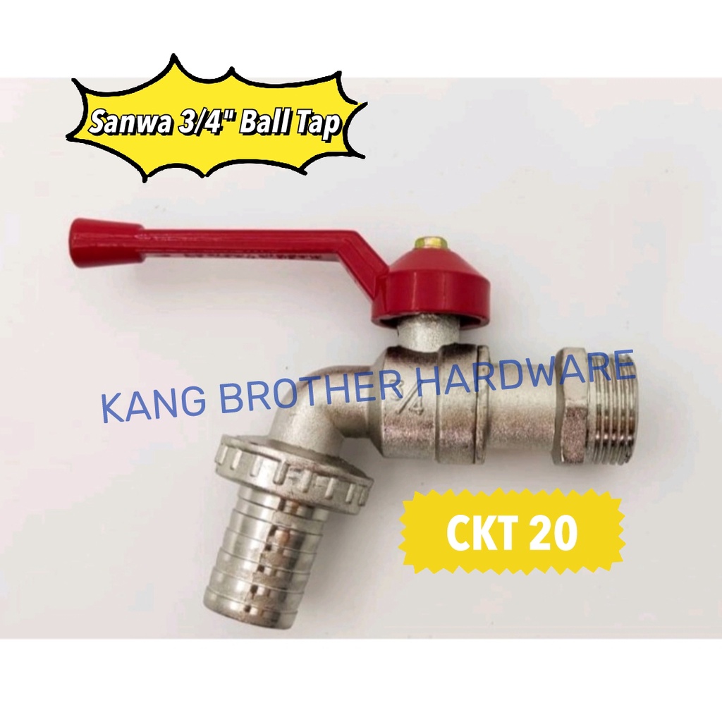 SANWA 3/4" Ball Tap with Hose Bib Cock With Hose Model CKT 20 Brass Chromium Faucet Water Tap