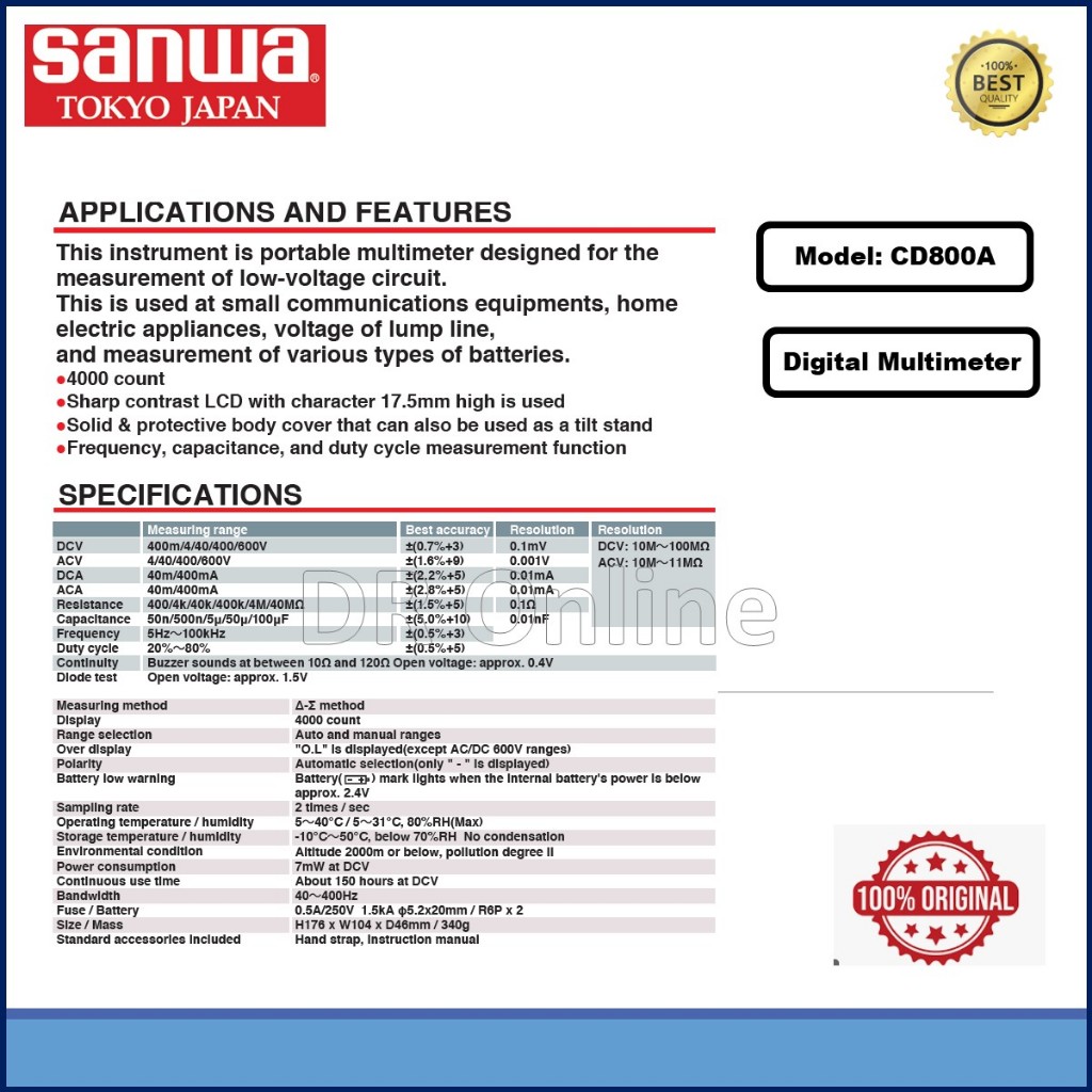 SANWA DIGITAL MULTI METER (CD800A)