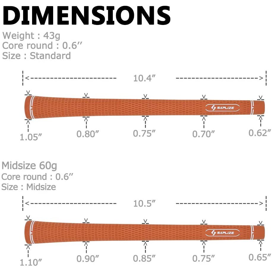 SAPLIZE CC06 Rubber Golf Grips 3 Grips Pack Standard or Midsize Ant-Slip Golf Club Grips