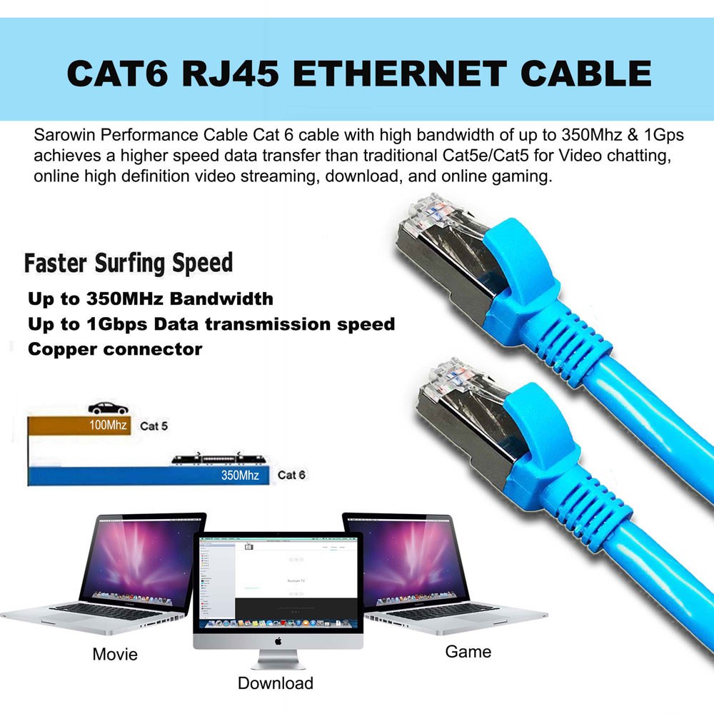 SAROWIN LAN Cable CAT6 Ethernet Cable Pure Copper 1M/2M/3M/5M/10M/15M/20M/30M