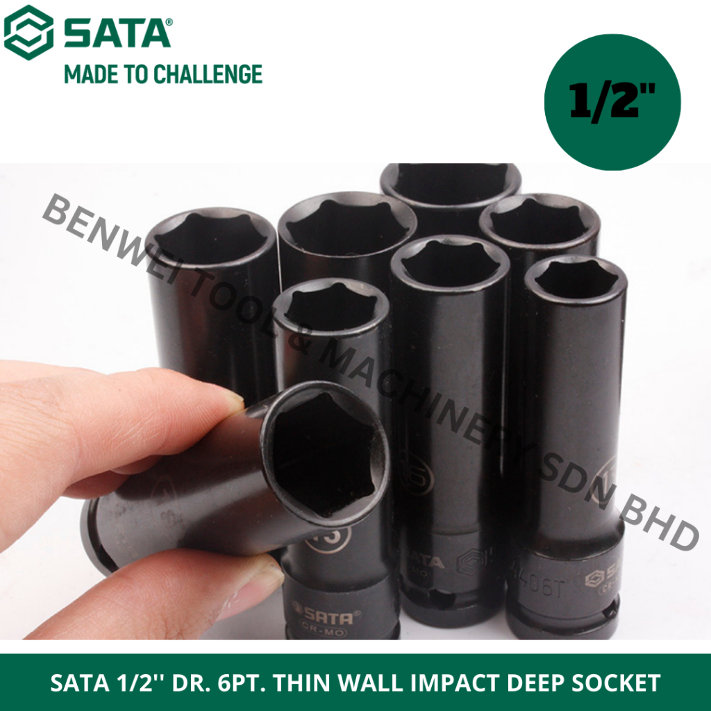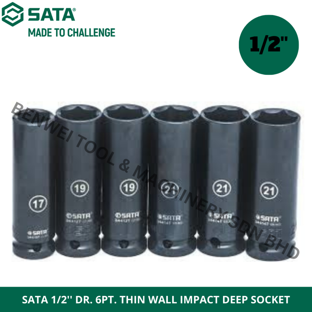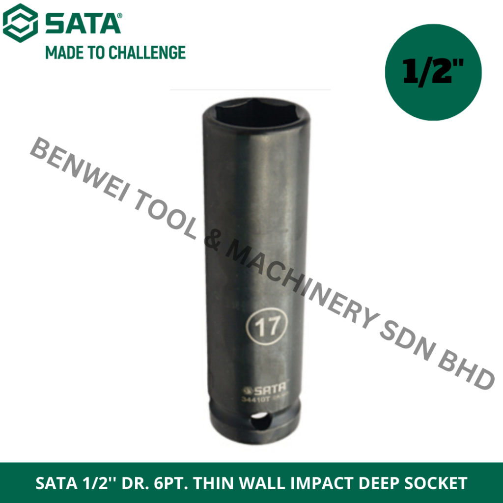 SATA 1/2" DR. 6PT. THIN WALL IMPACT DEEP SOCKET / SOCKET HITAM BOX / SATA 34410T 17MM / SATA 34412T 19MM / 34414T 22MM