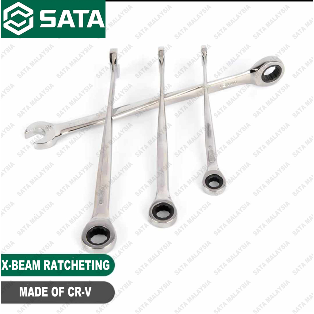 SATA 10Pc. X-Beam Combination Ratcheting Wrench Set Gear Spanner Sepana Gear X-Beam SATA Tools 8-19MM Sepana Berkualiti