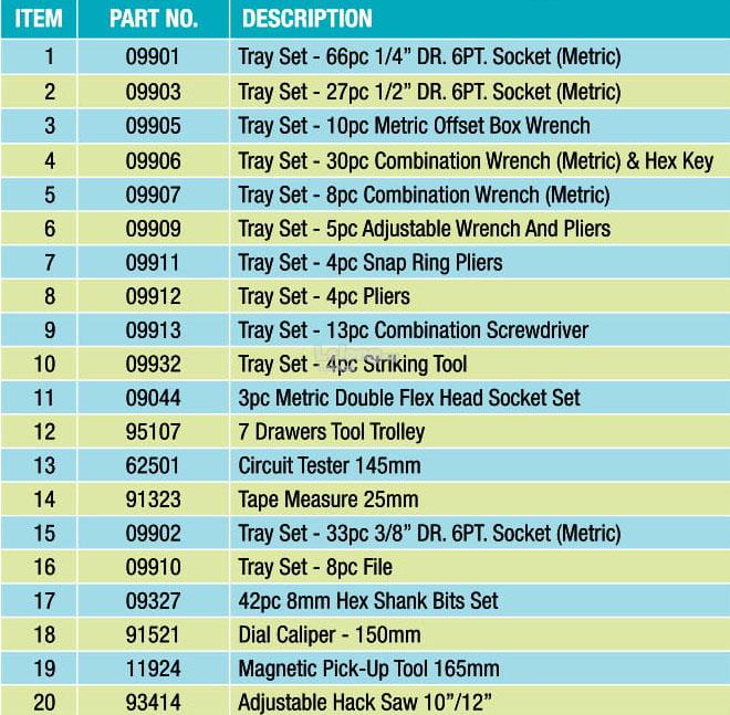 SATA 95107P-15A - 298Pcs 7 Drawer Tools Trolley Tool Box Set 95107 95107P 7 Drawers Cabinet Roller Tool Chest