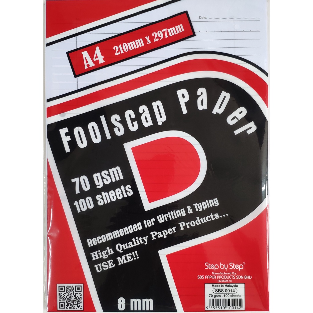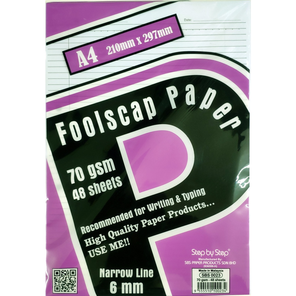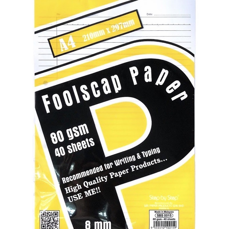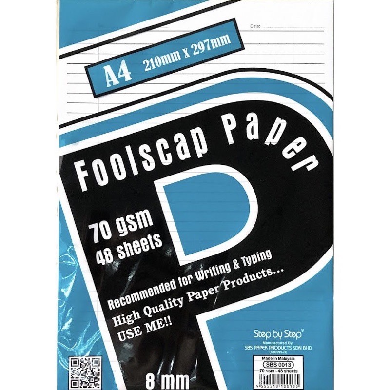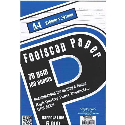 SBS A4 Exam Sheets Foolscap paper 70gsm 48sheets 80gsm 40sheets single line paper (Kertas Ujian)