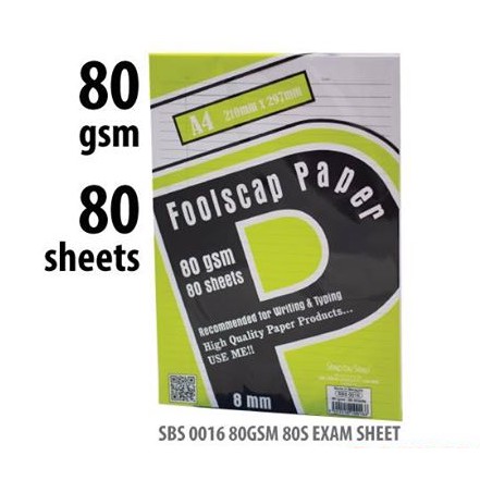 SBS Foolscap Paper / Exam Sheet / Kertas Kajang 80gsm 80 Sheets